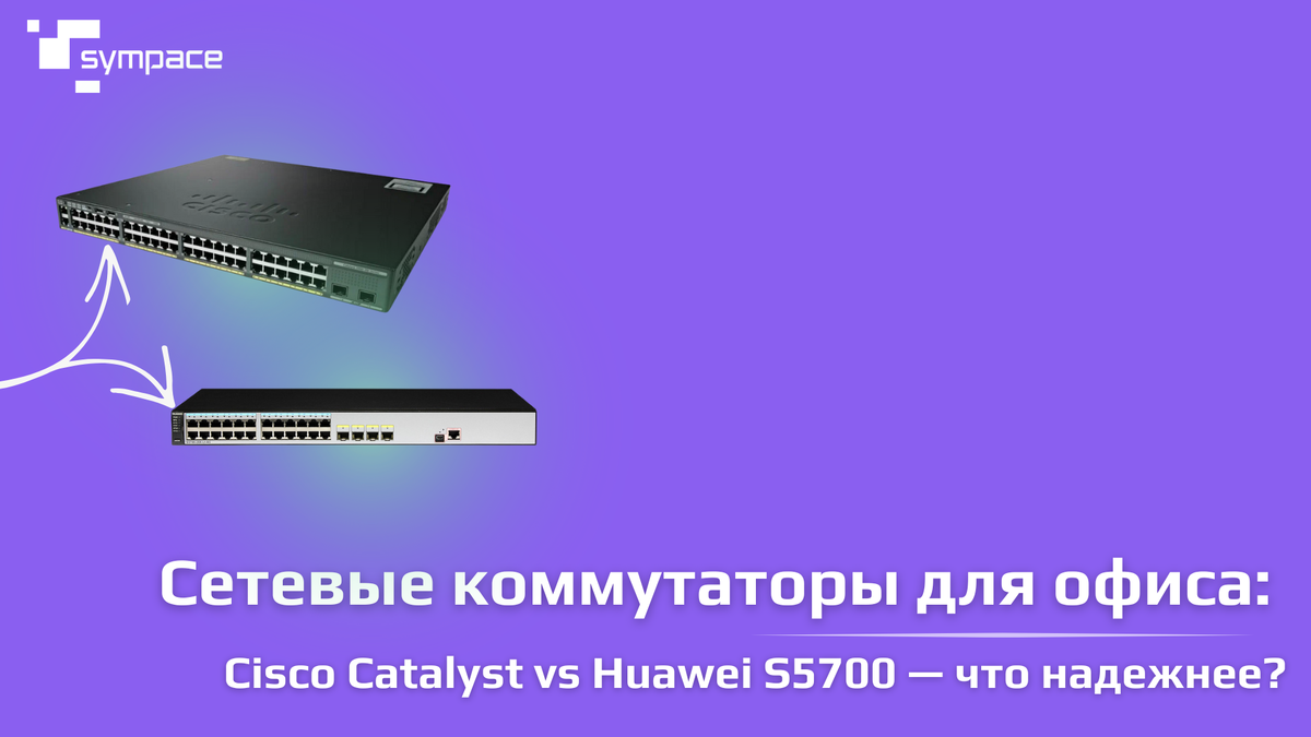 Выбор сетевого коммутатора — это не просто покупка «коробки с портами». Это фундамент вашей ИТ-инфраструктуры, от которого зависит скорость, безопасность и стабильность работы всей сети. Ошибка в выборе может привести к простоям, уязвимостям и лишним затратам. В этой статье мы сравним два популярных решения — Cisco Catalyst и Huawei S5700 — и разберем, какой из них лучше подойдет для офиса. Оба коммутатора поддерживают гигабитные порты и могут работать с VLAN, QoS и другими критически важными функциями. Но есть нюансы: Cisco Catalyst (например, серия 2960-X) известен стабильностью и оптимизированным трафиком даже при высокой нагрузке. Подходит для средних и крупных офисов, где важна предсказуемая работа и минимальные задержки. Huawei S5700 (например, S5700-28X-LI) предлагает хорошую цену за порт и достойную производительность. Однако при пиковых нагрузках возможны микрофризы — небольшие, но заметные задержки в передаче данных. Вывод от Sympace: если бюджет позволяет, Cisco Catalyst — б