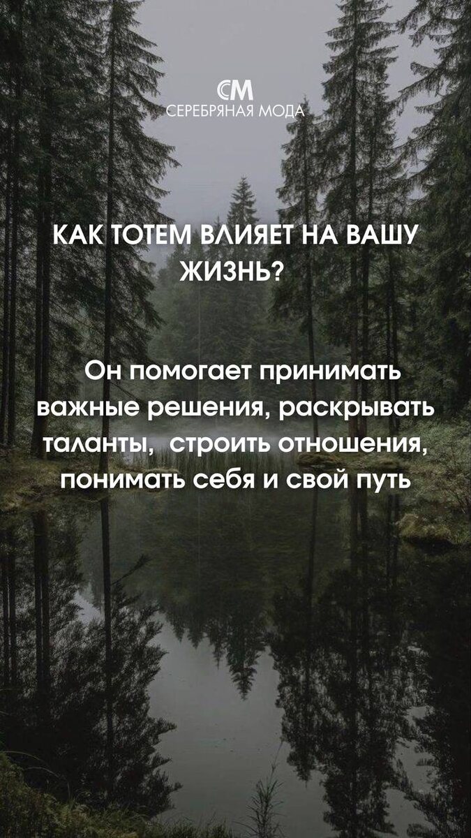 В ответ на пост 🐾 Как тотемы влияют на вашу жизнь? Задумывались ли вы когда-нибудь о связи с миром природы?🤔 Древние верования говорят, что у каждого из нас есть тотемное животное, которое влияет на нашу личность, судьбу и жизненный путь. Давайте разберемся, как это работает!👇 Что такое тотем? Тотем - это символ, представляющий собой животное, растение или природное явление, с которым человек ощущает особую связь. 🙌🏻 Считается, что тотемное животное наделяет нас своими качествами и служит проводником к нашей внутренней силе. Тотем: 🔹Отражает ваши сильные стороны и помогает понять, какие качества вам нужно развивать. Например, если ваш тотем - волк, вам может быть присуща верность, интуиция и стремление к справедливости. 🐺 🔹Дает вам интуитивные подсказки и помогает сделать правильный выбор в сложных ситуациях. Прислушайтесь к своей "животной" мудрости! 🦉 🔹Может влиять на то, как вы строите отношения с окружающими. Например, если ваш тотем - лебедь, вам может быть важна гарм