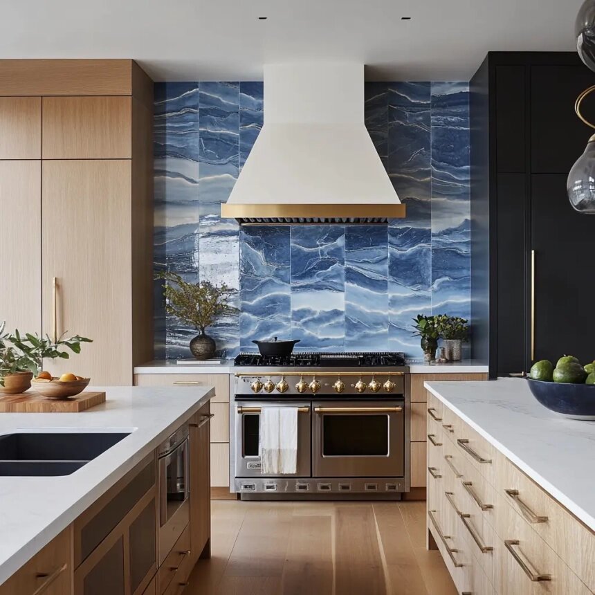 Мы собрали 13 идей для тех, кто хочет вдохнуть в кухню новую жизнь — с характером, глубиной и индивидуальностью. От природного камня до мозаики ручной работы, от зеркал до розовой плитки… Выберите ту, что расскажет вашу историю. Изысканный и эффектный выбор для тех, кто любит драгоценную глубину. Каменные прожилки в керамограните смотрятся как срез самоцвета — особенно выразительно в подсветке. Глянцевая поверхность и смелый принт — от ботанических рисунков до абстракции. Хорошо отражает свет и визуально расширяет пространство. Шестигранники создают динамичный, но сдержанный ритм. Подходит для скандинавских и минималистичных кухонь, особенно в матовом варианте. Центральный элемент с орнаментом, цветами или сюжетной композицией превращает фартук в художественный акцент. Отлично смотрится в классических интерьерах. Безусловная классика. Подойдет как для современной кухни, так и для нео-ар-деко. Белый, серый или зеленый мрамор — всегда статусно и выразительно. Нежный, теплый тон добавляе