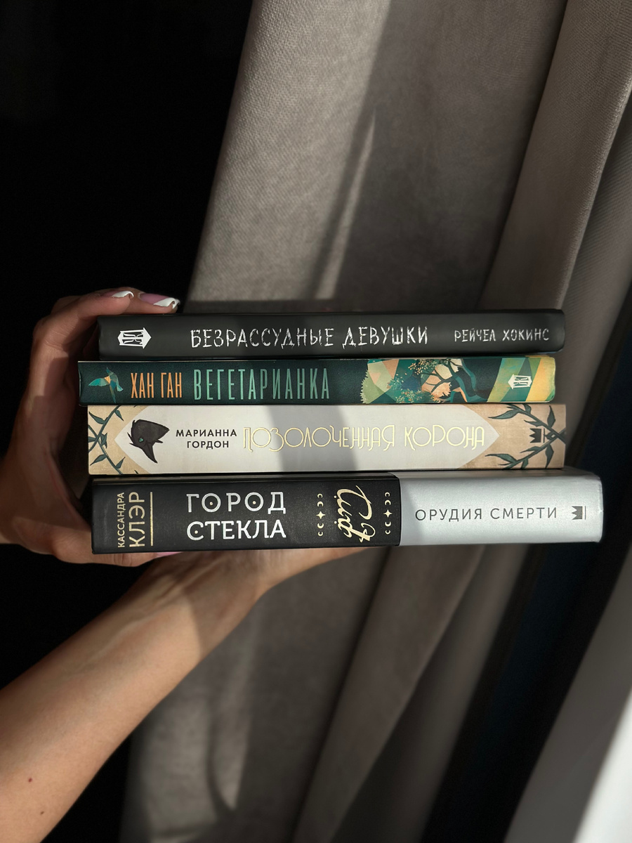 Итак, рассказываю вам о четырех совершенно разных книгах, которые появились в моей библиотеке 🔥 «ГОРОД СТЕКЛА » Кассандра Клэр О книге: Вслед за семейством Лайтвудов и Джейсом Клэри оказывается в Аликанте, столице Идриса, где хранится последнее ОРУДИЕ СМЕРТИ — Зеркало, за которым охотится Валентин. Только тот, в чьих руках окажется это Зеркало, отстоит и обретет мир. В борьбе с Валентином нефилимы объединятся с оборотнями и прочей нежитью, а Клэри из рук ангела Итуриила получит новую руну, но что она означает, девушка узнает только после решающей битвы. Многие тайны будут раскрыты, новые союзы заключены, кто-то погибнет, а кто-то откроет в себе новые способности и обретет надежду. «ВЕГЕТАРИАНКа» Хан ГАН О чем книга: Прекрасная и тревожная книга о бунте и табу, насилии и чувственности, а главное — о болезненных метаморфозах души. Ёнхе и ее муж вели самую обычную, размеренную жизнь, пока она не начала видеть кошмары. Сновидения – навязчивые образы крови и жестокости – мучают Ёнхе