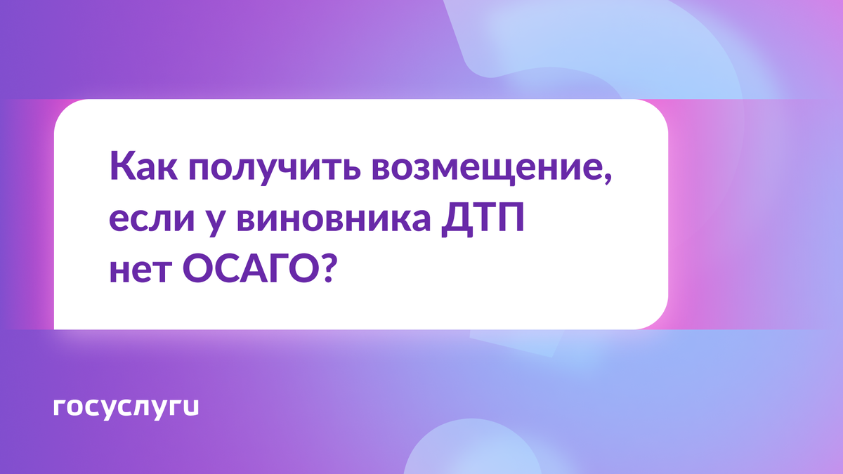 Чем полезно приложение «Госуслуги Авто» Если у виновника ДТП не оказалось ОСАГО: план действий 1️⃣ Убедитесь, что нет пострадавших. При необходимости окажите первую помощь и вызовите скорую. 2️⃣ Вызовите сотрудников ГИБДД. Оформить ДТП по европротоколу не получится. 3️⃣ Зафиксируйте место ДТП: сделайте фото аварии и повреждений. 4️⃣ Запишите данные виновника ДТП — ФИО, телефон, марку и госномер машины. 5️⃣ Попробуйте договориться с виновником ДТП о выплате ущерба. Для фиксации договоренностей обязательно составьте соглашение о добровольном возмещ