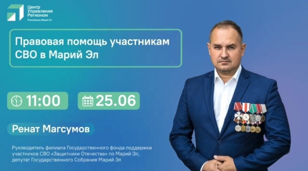 В ближайшую среду, 25 июня, в Центре управления регионом пройдет прямой эфир с начальником специализированного отделения службы судебных приставов Ольгой Ивановой и руководителем регионального филиала фонда «Защитники Отечества» в Марий Эл Ренатом Магсумовым.