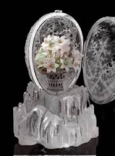 Яйцо на зимнюю тему послужило подарком и для Марии Федоровны, матери нашего императора Николая II. Там сюрпризом стал букет подснежников, извлекаемый из «ледяного» футляра яйца. Оно не могло не понравиться