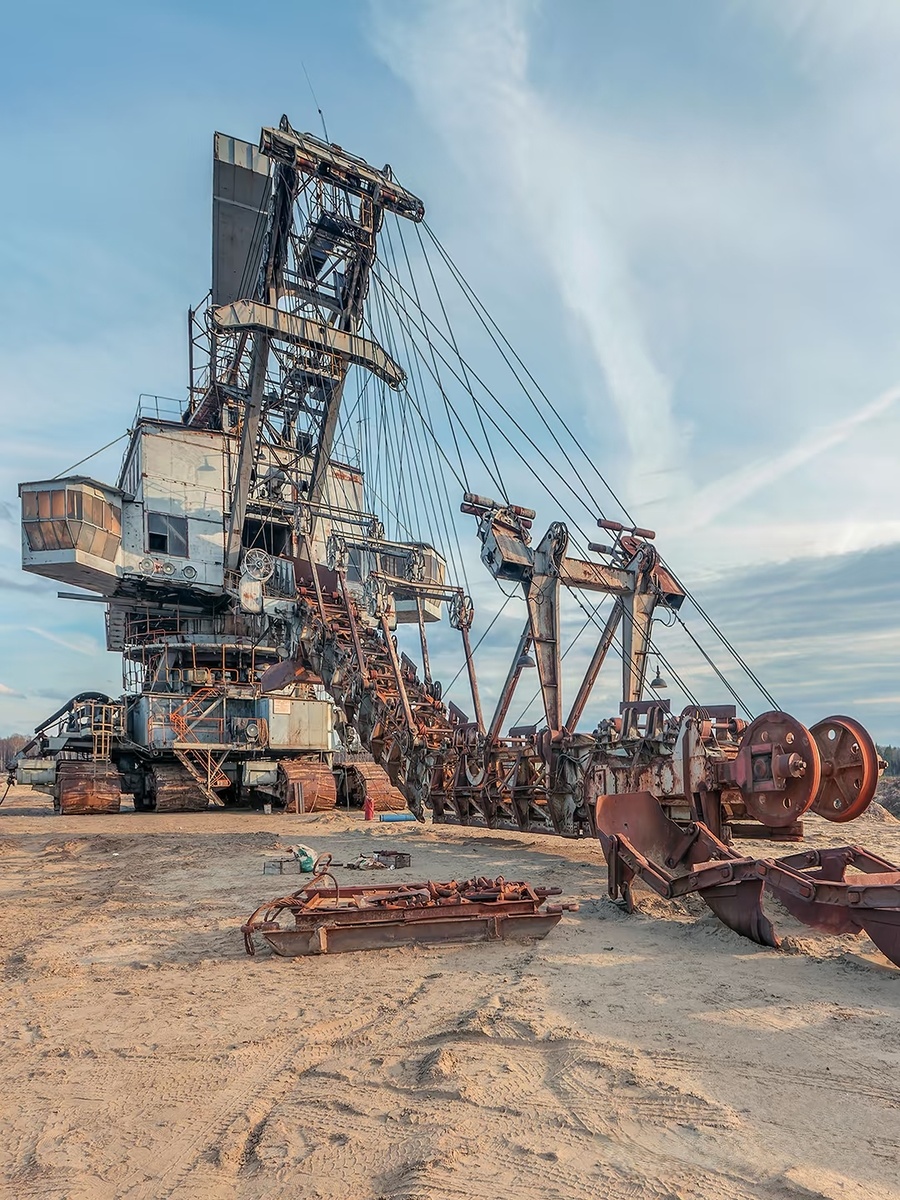 Представьте: бескрайние карьеры, тишина, поросшая бурьяном... И посреди этого апокалипсиса — ОН. Гигантский многоковшовый экскаватор TAKRAF ERS 710!