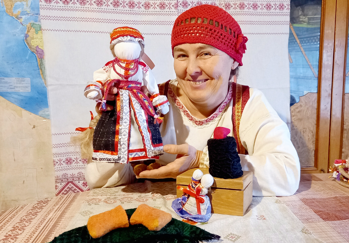 — У нас есть передвижной выставочный проект «Живые ремёсла». Мы с мужем и сыном создали выставку с интерактивной частью ― проведением мастер-классов. Мы эту выставку провезли по всему Джанкойскому району, это Северный Крым, наиболее обделённый курортной инфраструктурой. Мы знакомили сельских детей с нашими работами и ремёслами на практике. На выставке были глиняные игрушки сына Светозара, гончарные изделия мужа, выполненные в народных традициях славян, русских народных традициях. И были мои обережные куклы- мотанки, обрядовые, семейные, в общем, разные куклы разных народов России. Более 47 изделий.