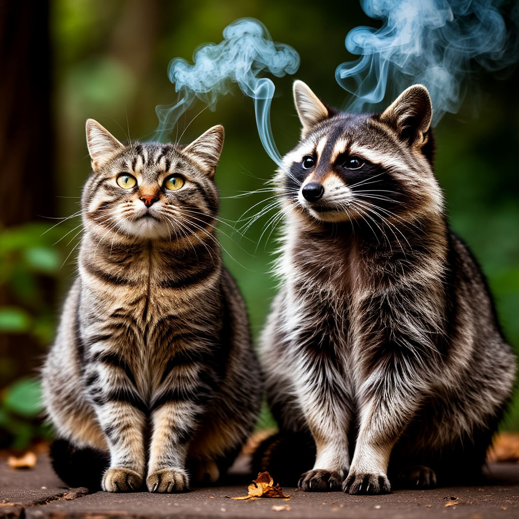 Жили-были в лесу кот по имени Мурзик и енот по имени Рикки. Они были неразлучными друзьями и всегда придумывали себе разные приключения. Особенно им нравилось воображать, что они — настоящие люди: ходят в костюмах, ездят на машинах и живут в больших домах. Каждый день Мурзик и Рикки собирались у старого дуба, доставали из карманов свои маленькие трубочки и дули шмаль — мягкий дым, который они считали волшебным. Они верили, что так могут стать чуть-чуть взрослее и важнее. В их воображении они превращались в героев: смелых рыцарей, мудрых королей или знаменитых путешественников. Но однажды, после очередной «вечеринки», Мурзик почувствовал себя плохо. Глаза его заплыли, голова кружилась, а сердце билось слишком быстро. Рикки тоже стал слабым и уставшим. Они поняли, что их забавы — не безобидные игры, а вредные привычки, которые портят здоровье. Прошло немного времени. Мурзик и Рикки больше не могли играть так весело и фантазировать о великих делах. Их мечты о приключениях остались только