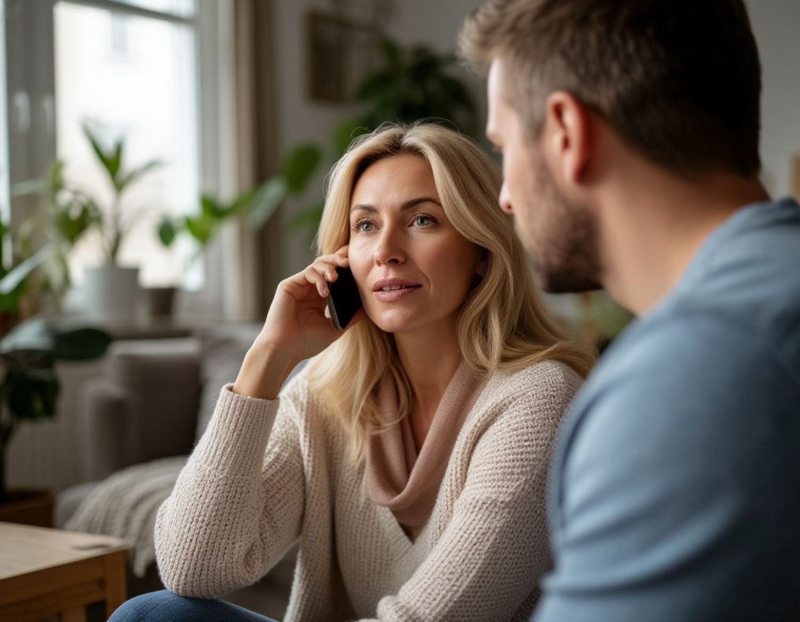 Испуганная супруга с телефоном в руках прибежала на кухню.