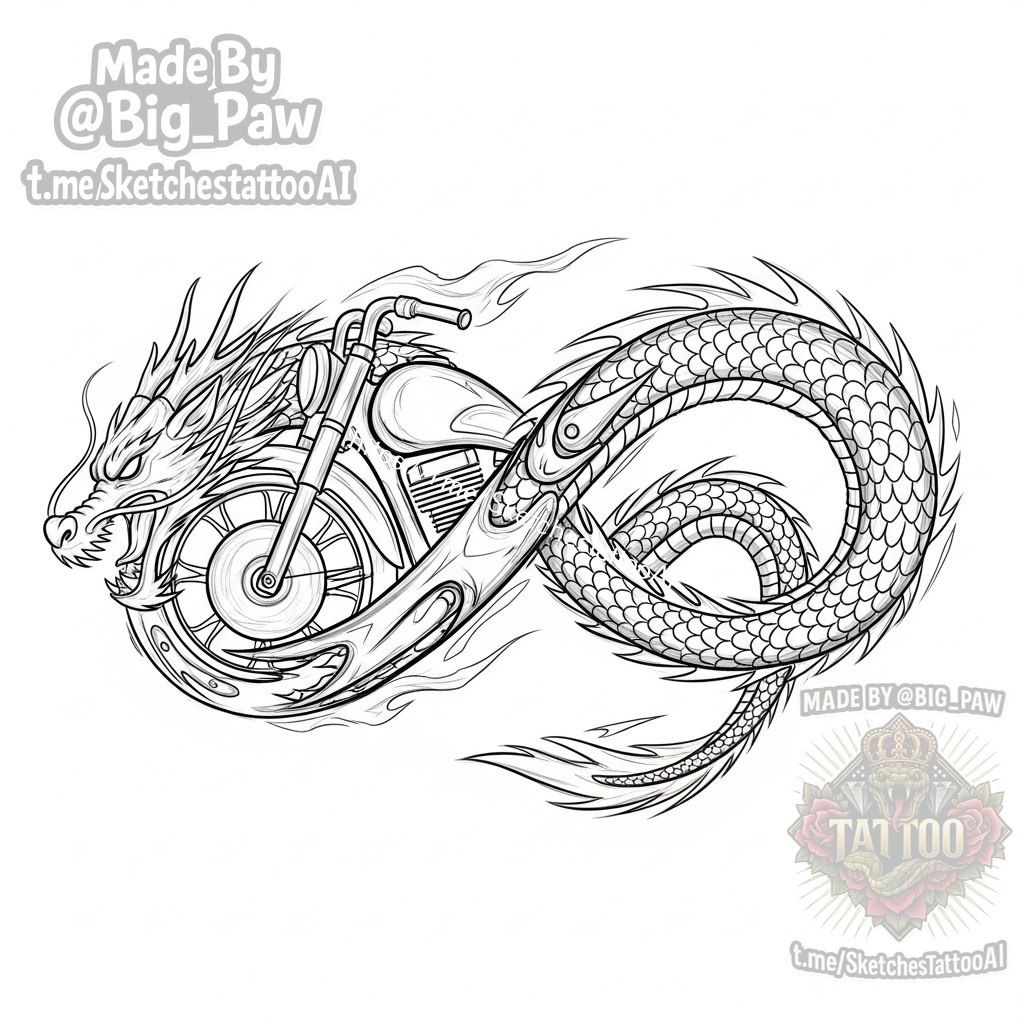 #2538 Подборка по запросу подписчика - Мотоцикл в виде знака бесконечности и он дракон 🧠 SYNTX 💳 Донат 😎 НейроБро 😎 Эскизы без вотера 💀 Эскизы от нейросети #мото #дракон #бесконечность #эскизы #тату #татуировки