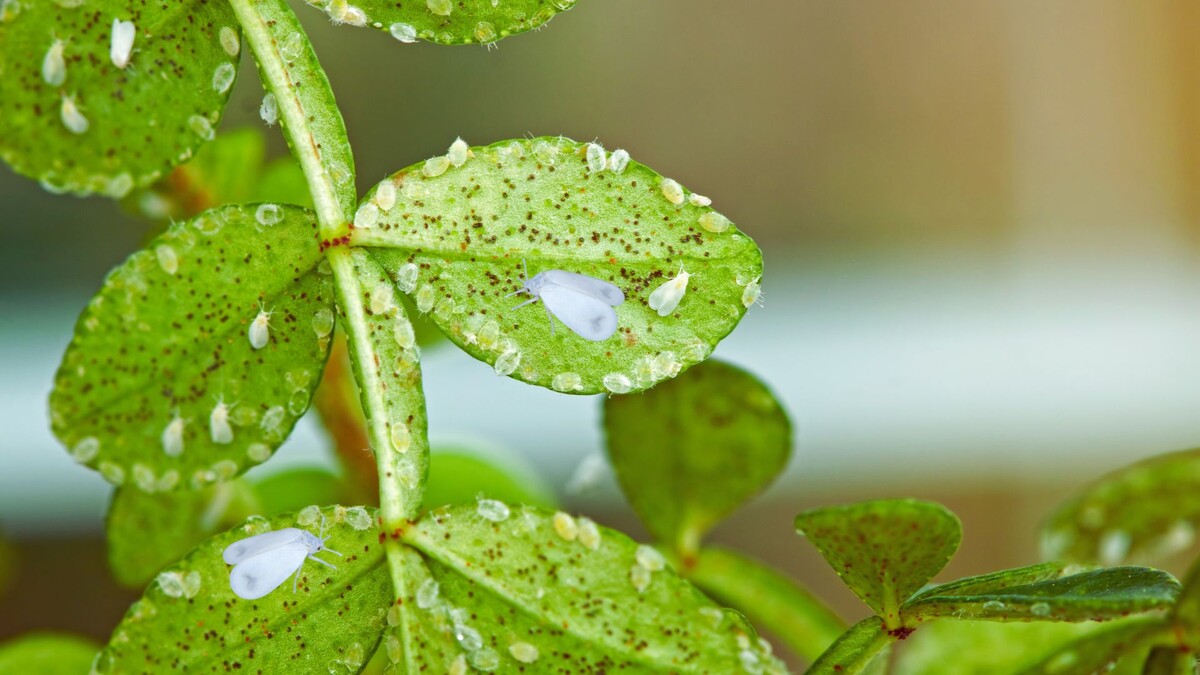 Белокрылка — это опасный вредитель, с которым сталкиваются многие дачники. Эти мелкие белые мушки, обитающие на нижней стороне листьев, способны за короткое время нанести серьезный вред растениям, особенно в теплицах и на закрытых участках. Заметить их можно не сразу, но как только появляются скрученные листья, липкий налет и ослабленный рост растений — стоит действовать немедленно. Белокрылка сама по себе не так страшна, как последствия ее жизнедеятельности. Во-первых, она высасывает сок из листьев, что ослабляет растение и замедляет его рост. Во-вторых, на липких выделениях белокрылки быстро развиваются сажистые грибы, которые препятствуют фотосинтезу и могут полностью погубить растение. Кроме того, белокрылка переносит вирусные заболевания, что делает ее особенно опасной в огороде. Основные признаки заражения белокрылкой: наличие мелких белых мошек на нижней стороне листьев; липкий налет (медвяная роса) на листьях; пожелтение и скручивание листьев; замедление роста растений; черный