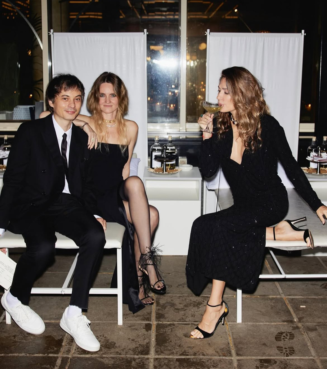 День рождения Кати Мухиной прошёл в атмосфере «гениального нео-Ньютоновского арта»: визуальный ряд, вдохновлённый эстетикой Хельмута Ньютона, чёрно-белая палитра, идеальный свет и неожиданные детали — от ванн до тархуна в бокалах. Это было не просто событие, а арт-инсталляция, где каждый гость стал частью экспозиции. Сет-дизайн – сочетание мохнатых цветов и санаторного антуража. Гости, и в первую очередь Елена Перминова, выбрали total black: ультракороткое платье с бриллиантовым колье и чулками на подтяжках – дерзкая отсылка к любимому стилю Ньютона Сама Катя появилась в чёрном платье из кружева — сдержанном, но при этом предельно чувственном. Чистая линия силуэта, прозрачная фактура, аккуратный макияж — она выглядела как героиня кадра Ньютона, замершая между вспышками камеры. Виктория Шелягова выбрала закрытое чёрное платье и дополнила драматичный образ кожаным жакетом от Gucci. Сильный, собранный образ, который идеально сочетал в себе классику и жёсткость, характерную для эстети