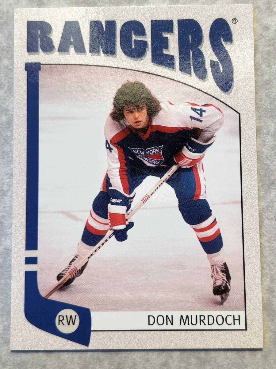 Дон Мэрдок Обладатель шикарной шевелюры был выбран на драфте 1976 года под общим 6-м номером командой «Нью-Йорк Рейнджерс». Примечательно, что в этом же году на драфте WHA клуб «Цинциннати Стрингерс» потратил на него выбор лишь во втором раунде (общий 12-й). Игрок мог выбрать, где играть. Он сделал его в пользу Национальной хоккейной лиги. Правый крайний нападающий в преддрафтовый сезон набрал 165 очков в 70 играх и 202 минуты штрафа, играя за команду из WHCL (была такая молодёжная лига). В первый же год после драфта Мэрдок набрал 56 очков (32+34) в 56 играх, годом позже 55 (27+28) в 66 встречах. Дон показывал хороший хоккей, набирая почти по очку за игру в первых четырёх сезонах. В форме «Рейнджерс» он провёл 221 игру и заработал 190 баллов (97+93) и был обменян по ходу четвёртого сезона в НХЛ. Команде за него достался Кэм Коннор, выбранный в 1974 году под общим пятым номером. Печально, но Коннор авансов так и не оправдал, сыграв в НХЛ всего 274 игры и набрав 171 очко за девять ле