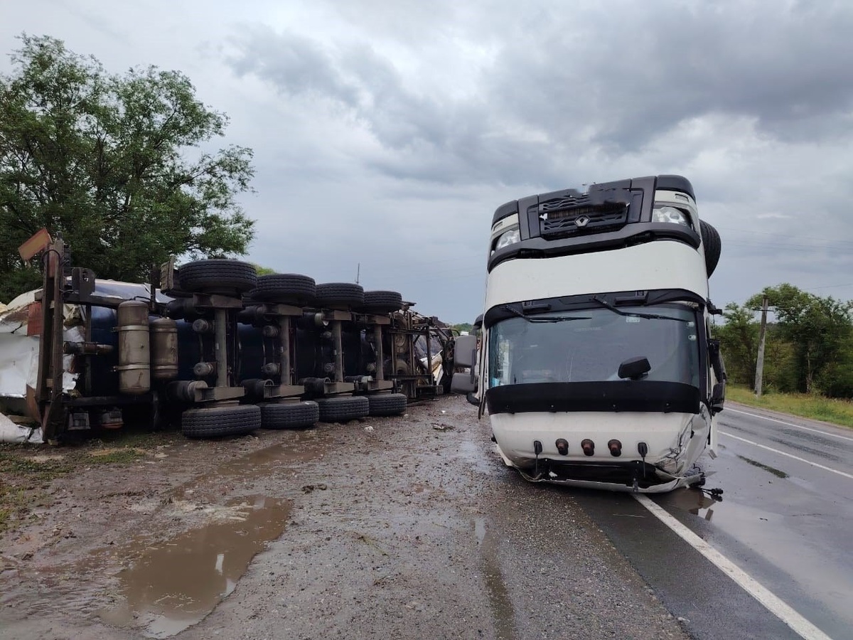 🗯В Самарской области на трассе перевернулась автоцистерна с нефтью