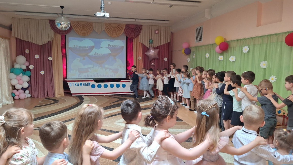 Ребята путешествовали на поезде и корабле по необъятной России, читали стихи, водили хоровод с мишкой, танцевали на полянке с зайчиками, собирали ягоды с волком, любуясь красотой родного края. В конце праздника мы организовали салют из шариков.