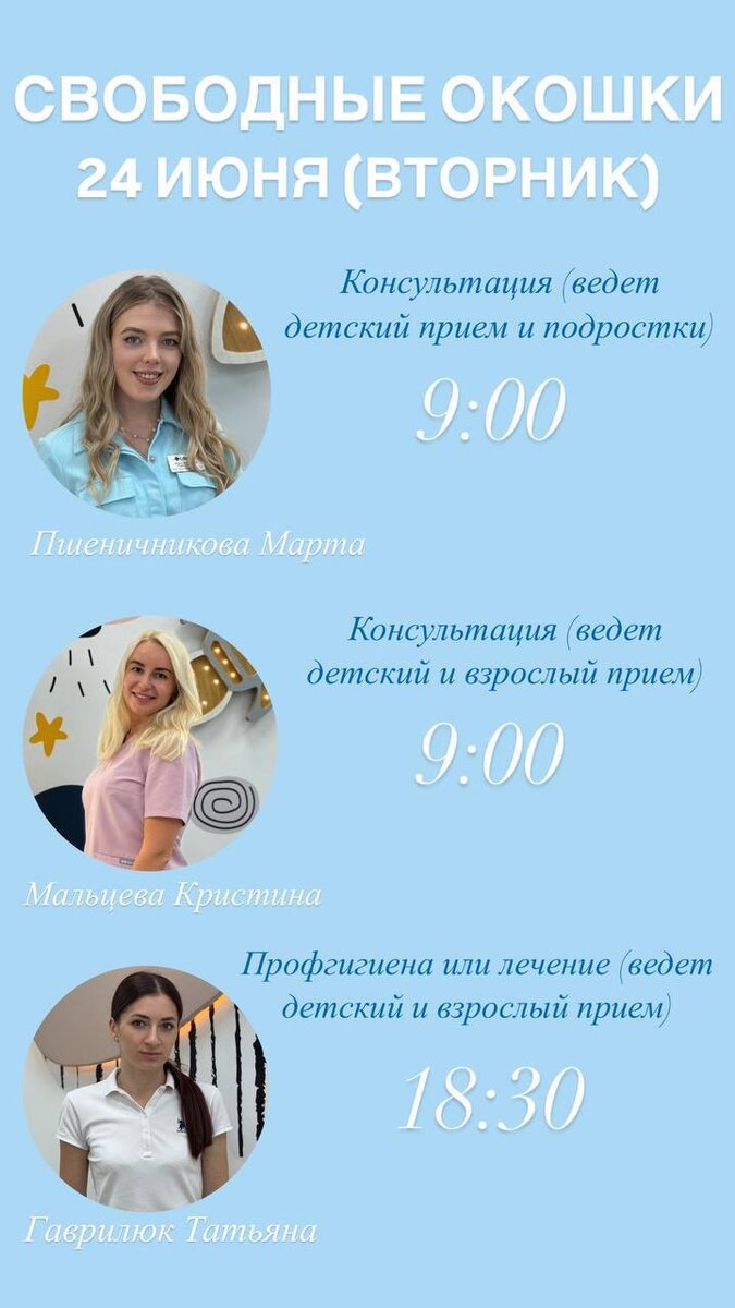 Свободные окошки к нашим врачам-стоматологам 🦷