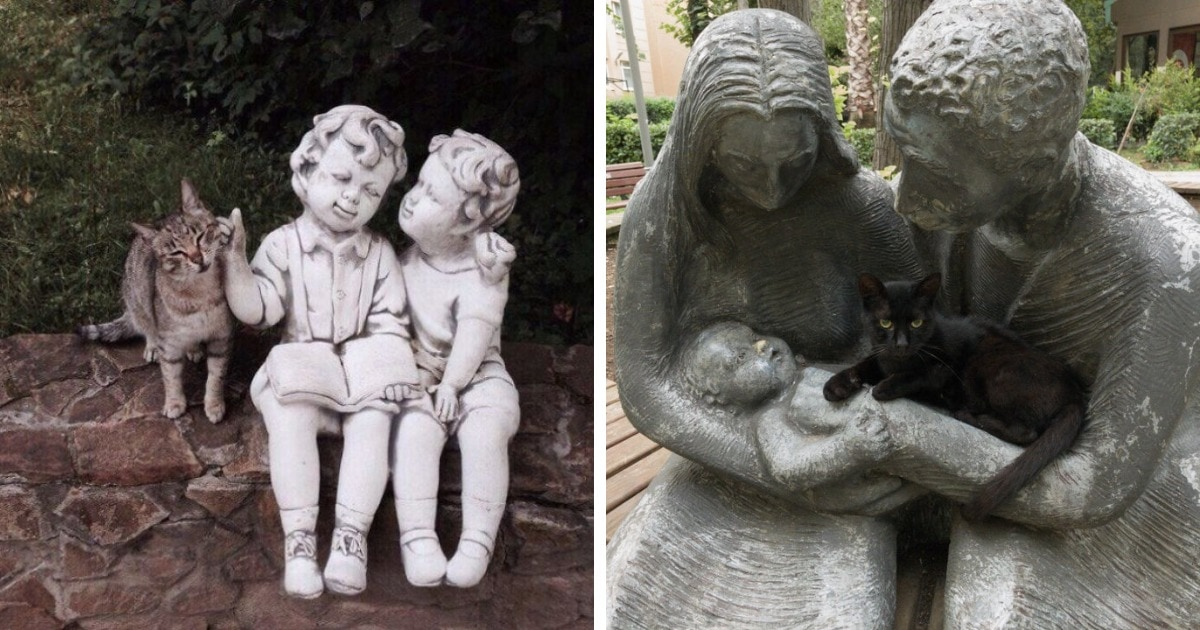 14 случаев, когда котики решили составить компанию статуям, став в итоге их главным украшением