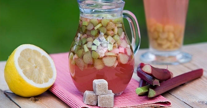 Вкусный и полезный напиток, который нравится и взрослым, и детям. Он положительно воздействует на сердечно-сосудистую систему. Для приготовления потребуются яблоки, стебли ревеня, гвоздика, сахар, вода. Яблоки крупно нарежьте, не вынимая сердцевину. Измельчите стебли. Поставьте воду на медленный огонь, добавьте сахар и гвоздику. Варите полчаса, затем процедите. Подавайте компот с кубиками льда. Разнообразить состав рецепта можно клюквой или красной смородиной.