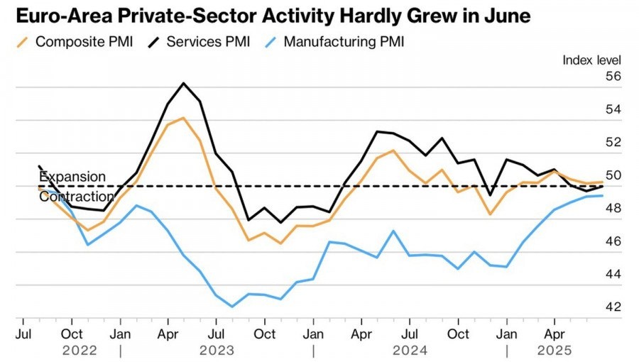 https://basechop.ru/wordpress/?p=47500 Беда не приходит в одиночку. Европейская промышленность начинает терять пар после бурного роста в период фронтальной загрузки американского импорта. Валютный блок является нетто-экспортером нефти. Поэтому ралли Brent из-за конфликта на Ближнем Востоке заставляет с опаской смотреть на будущее еврозоны. Наконец, ставки на немецкие облигации как актив-убежище не работают. Продажи долга Германии стали катализатором падения EUR/USD. В июне деловая активность валютного блока едва выросла – до 50,2, не оправдав прогнозов экспертов Bloomberg. Индекс менеджеров по закупкам в производственном секторе не может подняться выше критической отметки 50 на протяжении 36 месяцев, сектор услуг едва расширяется. Динамика показателей сигнализирует о стагнации во втором квартале после расширения в первом из-за фронтальной загрузки американского импорта. Динамика европейской деловой активности На первый взгляд, нет ничего страшного, ведь инфляция вроде бы приручена.