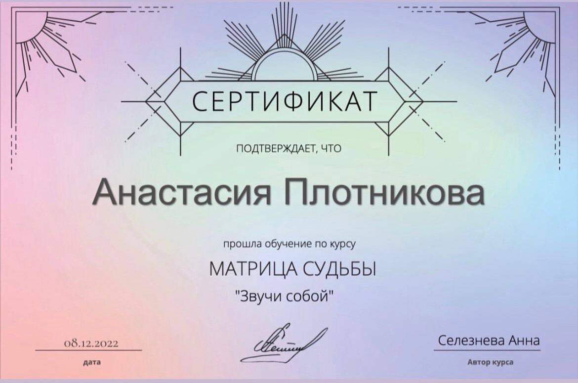 Регистрировалась тут на одной платформе для практиков.. поняла, что у меня в канале нет ни одного моего сертификата о прохождении курсов 🤪 А они есть Вот) #сертификаты@matrixnastya_blog
