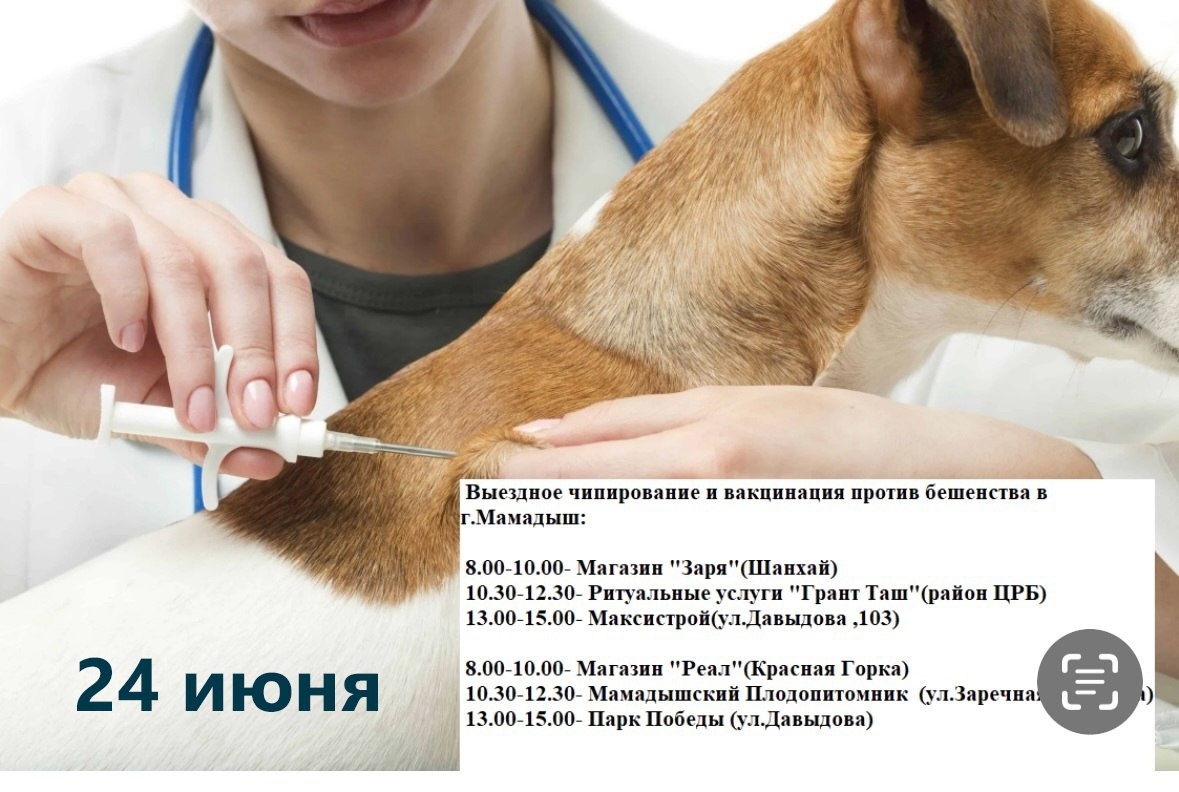 ❗ 24 июня 2025 года в Мамадыше состоится выезд мобильных пунктов по обязательной регистрации, чипированию и вакцинации домашних животных