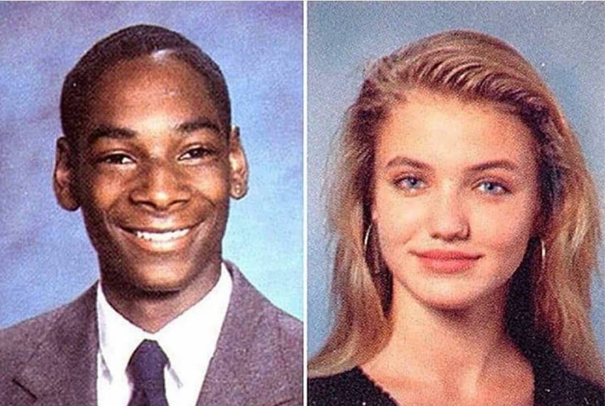 Как вы, наверное, поняли, на фотографии запечатлены две американские знаменитости – актриса Кэмерон Диаз и рэпер Снуп Дог. Почему они оказались вместе? Казалось бы, их жизненные пути никогда не пересекались. Дело всё в том, что Кэмерон Диаз поделилась воспоминаниями о своих школьных годах. Так уж получилось, что актриса и певец учились в одной школе, хотя Келвин Кордозар Бродус-младший (настоящее имя рэпера) был на год старше её. Она описала его как очень высокого и худощавого мальчика, который уже тогда выделялся своей необычной внешностью. На голове у него было множество дредов, да и манера одеваться оставила на девушку неизгладимое впечатление. Воспоминания Диаз о Снуп Доге в школьные годы не ограничивались его внешностью. Она упомянула, что во время учёбы, вполне возможно, покупала у него травку. Никто не знает, как бы сложилась судьба Снуп Дога, не вступи он в группировку Rollin' 20's Long Beach Crips. Ведь в детстве он пел в церковном хоре, играл на пианино и вообще мечтал о кар