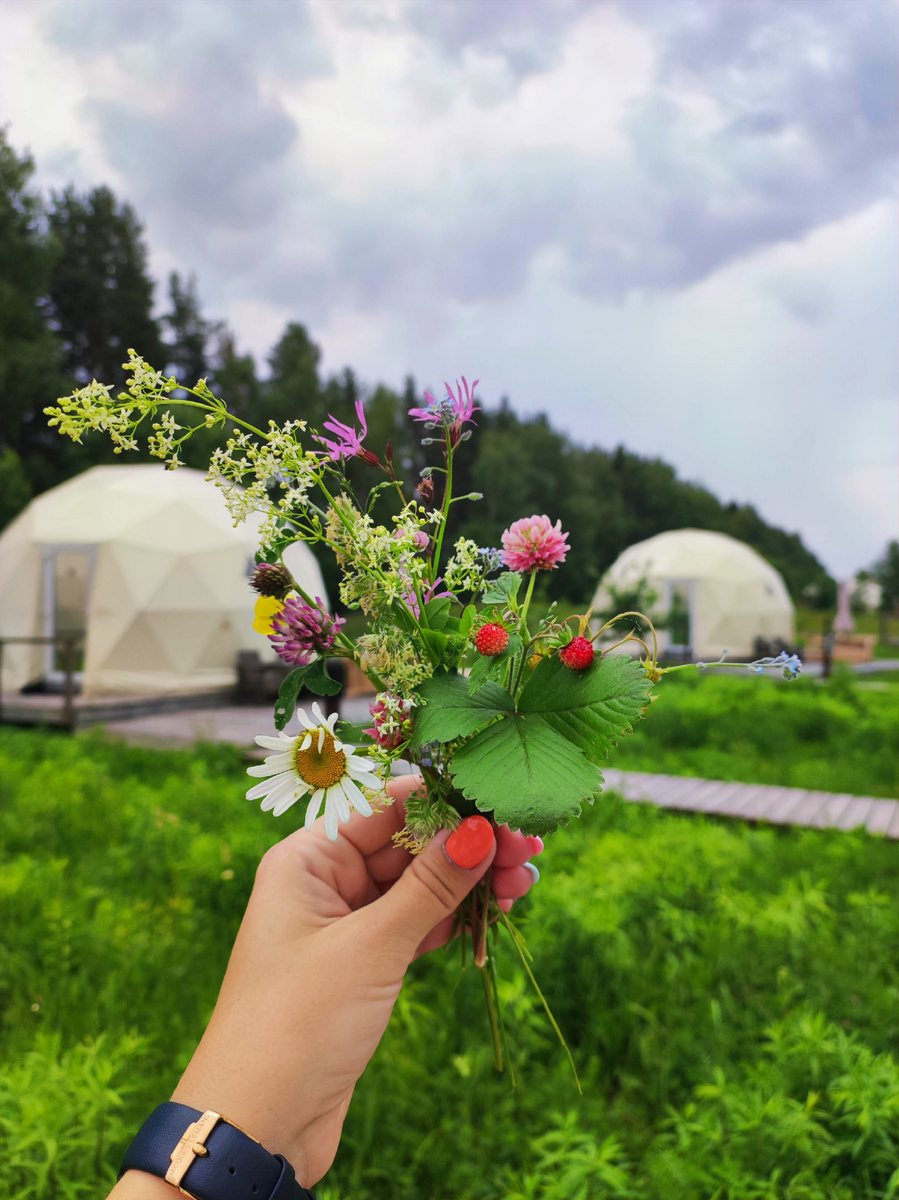 Глэмпинг - классное решение (но не дешёвое!), когда надоели четыре стены и работа. Мы решили сбежать от повседневной рутины в "ИВА СПА". Глэмпинг находится рядом с лесным массивом, в 36 км. от Тулы. Здесь есть как деревянные домики, так и сферы. Но когда будете бронировать, обратите внимание, есть ли там кухня, если она, конечно, вам нужна. Во многих сферах её нет. Кухонный уголок с холодильником и микроволновкой присутствует только в геокуполе люкс. А ещё там есть второй ярус с кроватью. Но летом спать наверху невыносимо жарко. Мужу пришлось для сна раскладывать кресло. Из развлечений в глэмпинге очень много настольных игр, теннисный стол, на улице - верёвочный парк и качели для детей. Можно взять в аренду велосипеды (500 ₽ за 2 часа). Но больше всего нам понравилось проводить время в термальном комплексе. Подогреваемый бассейн и джакузи находятся под стеклянным куполом. Нам с погодой не очень повезло: то дождь, то солнце, зато в комплексе всегда было комфортно. Ещё мне понрав