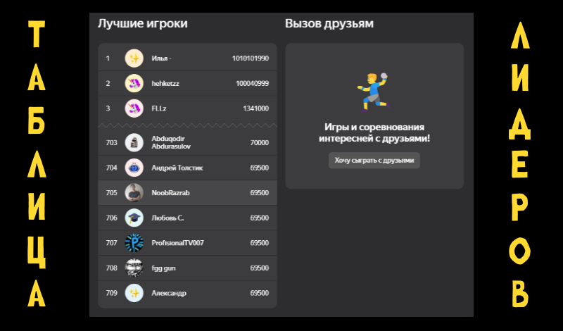 Затем придумай название на выбранных языках для лидерборда, например «Лучшие игроки» и «Best Players». Не уверен, что именно они будут отображаться, вроде Яндекс юзает стандартные названия или его нужно самому настраивать в проекте (но это не точно).