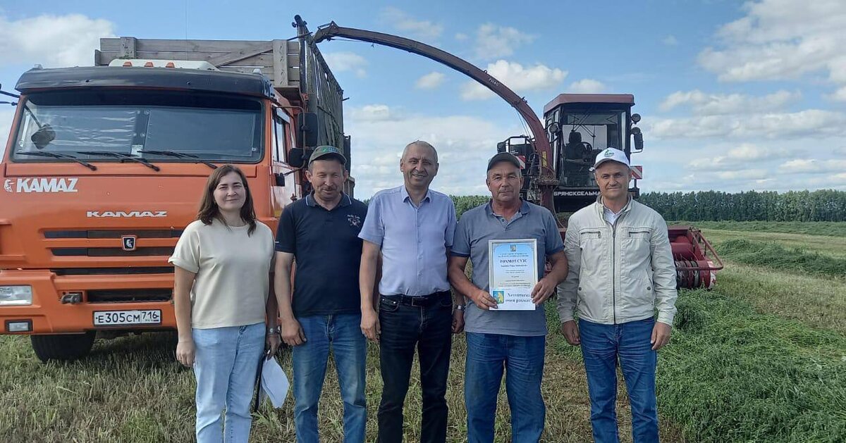 "Кама" хуҗалыгының алдынгы комбайнчылары Фәрит Хәйретдинов белән Рафис Сәетов терлек азыгы хәзерләү кампаниясендә тырышып хезмәт куеп, беренче һәм икенче урыннарга лаек булдылар.