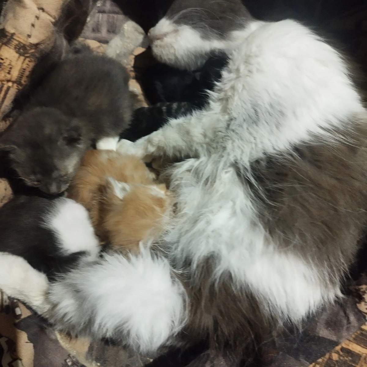 В это же время волонтерам позвонила неравнодушная женщина. Которая рассказала, что нашла брошенных котят, им несколько дней отроду. Они голодают и кричат. Выкармливать из пипетки женщина их не сможет, поскольку работает медиком с суточными дежурствами. Котят забрали. Теперь та самая спасенная кошка сама спасает малышей.
