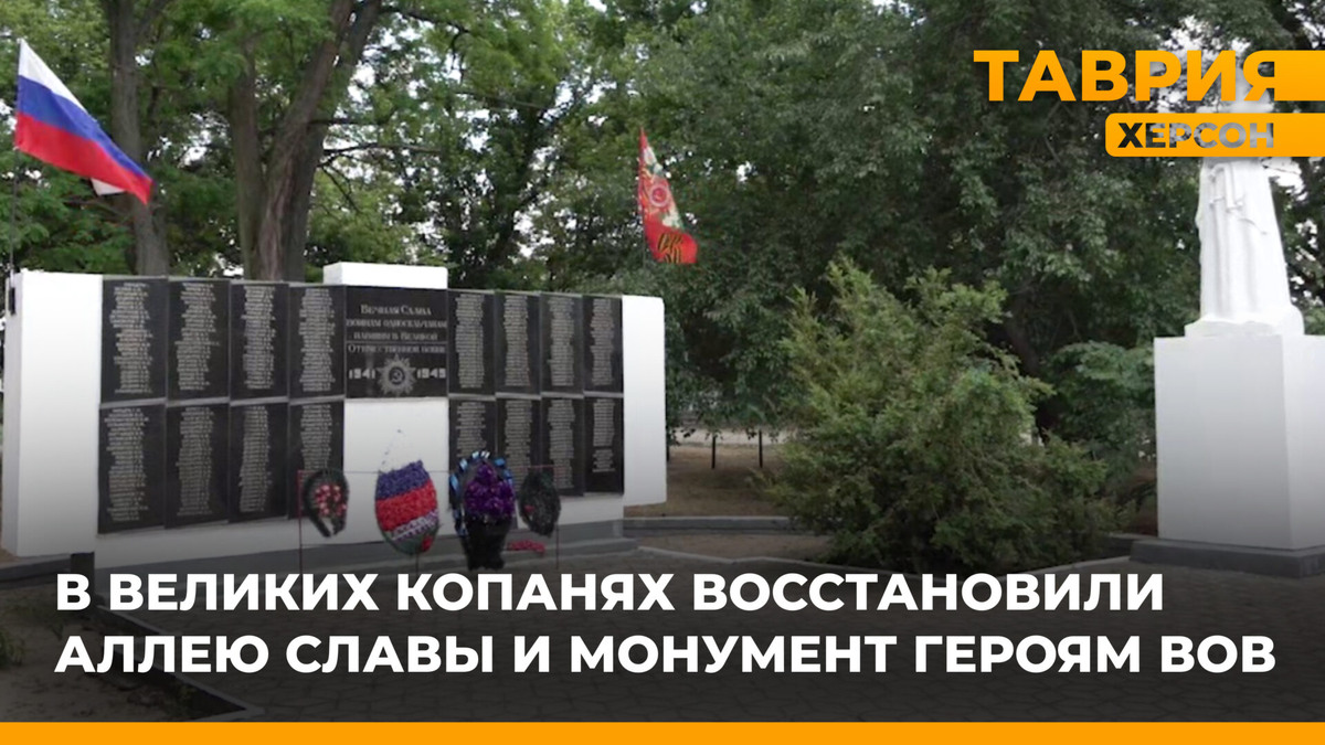 В Великих Копанях Алешкинского округа восстановили Аллею Славы и монумент героям Великой Отечественной войны. Поддержку оказала Калининградской область. Бригада региона-шефа взяла на себя реконструкцию мемориального комплекса, установку скамеек, разбивку газонов. В планах высадка зеленых насаждений. «Состояние этого парка было так сказать ухоженное, но не было проведено здесь никаких ремонтов. Мы здесь провели штукатурные, отделочные работы. Привели в соответствующее состояние», — отметил представитель региона-шефа. Кроме этого в трёх населённых пунктах Алешкинского округа – Брилёвке, Виноградово и Великих Копанях установили новые арт-объекты. А всего в округе бригада Калининградской области восстановила 10 монументов. Ранее ТРК «Таврия» сообщала, что в День памяти и скорби в Скадовском Свято-Сергиевском храме прошла литургия.