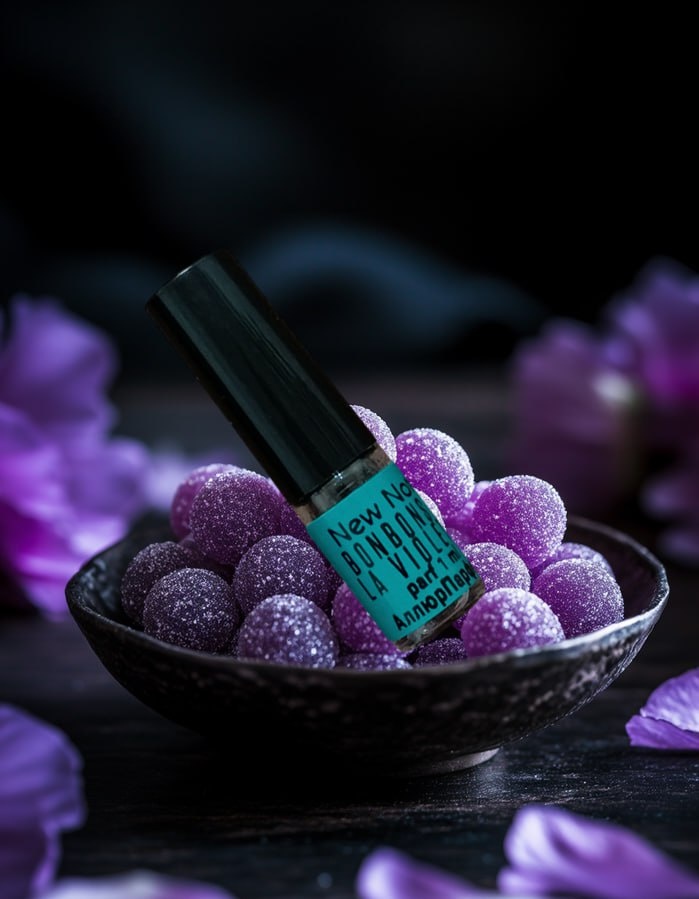 Фиалки очень популярны во французской кухне - вы нередко можете встретить десерты с их присутствием в парижских магазинах. Засахаренные фиалки производят в Тулузе, но для того, чтобы ощутить их аромат, нет необходимости прямо сейчас покупать билет во Францию: "Bonbons A La Violette" (в переводе с французского - "Фиалковые конфеты") филигранно передает их тонкий гурманский оттенок. В этой композиции можно обнаружить прозрачные фиалковые лепестки, покрытые апельсиновой сахарной пудрой и деликатной древесной стружкой: https://allureparfum.ru/katalog/zhenskaya-parfyumeriya/new-notes/new-notes-bonbons-a-la-violette.html