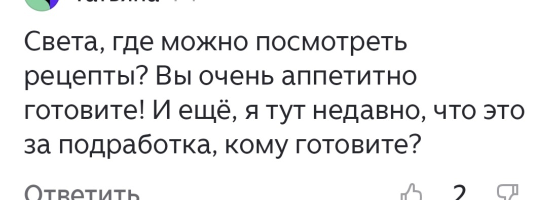 Я готовлю на заказ для одной семьи раз в неделю, иногда два или если какой-то праздник, то организовываю блюда на банкет. Сотрудничаем мы уже три с половиной года. Обычно делаю шесть блюд. Я составляю меню и согласовываю с заказчицей. Реже она сама пишет, чего они хотят. Уже на основании этого пишу список продуктов и закупаю. Раньше отчитывалась по чеку, сейчас уже работаем на доверии, потому что покупаю что-то впрок, по акциям, чтобы хоть немного сэкономить, учитывая цены на продукты. Всех всё устраивает.