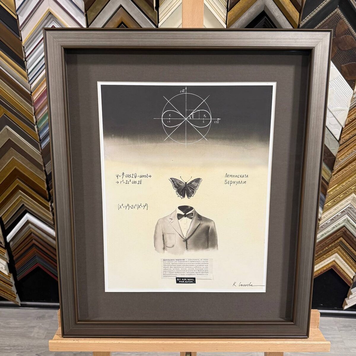 А рядом с акварельной галактикой Кати — «Mr. Tie». Или, если по-русски — «Мистер Бабочка» 🦋👔 Мы с Татьяной оформили эту авторскую работу в строгий, глубокий серо-коричневый багет и льняное паспарту. Получился настоящий галстучный арт-объект. Минимализм формы, максимализм смысла. Смотришь — и вроде всё просто: фигура, силуэт, галстук. Но тут же ловишь себя на мысли, что это почти портрет самой идеи творческой деятельности. Такой собранный, дисциплинированный абрис хаоса. Внутри — буря 🌪, снаружи — узел, а за место головы бабочка... Нормально. Что именно происходит в этом образе — решать вам. Я, если честно, немного устал от трактовок. Пусть Mr. Tie сам ведёт диалог со зрителем. В конце концов, настоящие образы не нуждаются в подписях… 📍 Москва, Дмитровский переулок, д. 4, стр. 1 🕰 Работаем без выходных 🌐 bagetnayamasterskaya.com 🖼 Есть картина, плакат, вышивка или футболка, которую давно хочется оформить? Приходите — подберём багет с настроением