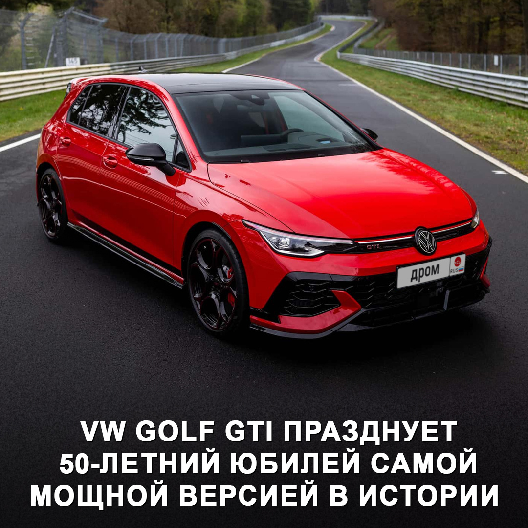 Кстати, с тех пор по миру разошлось уже более 2 500 000 таких автомобилей 😎 В честь этого компания показала Golf GTI Edition 50 — самый мощный GTI в истории: → 2-литровый турбомотор на 325 л.с. (420 Нм), DSG-7 и передний привод. → 5,5 сек. до сотни, 16,8 сек. до 200 км/ч, максималка — 270 км/ч. → Перенастроенная подвеска, клиренс занижен на 15 мм. → Чёрные акценты на кузове и крыша, эксклюзивные цвета. → Спортивные кресла, накладки на пороги и педали. Для него доступен специальный пакет GTI-Performance с другой подвеской, лёгкими коваными дисками и титановым выхлопом. Такая машина поставила рекорд серийных Volkswagen на Нюрбургринге — 7:47,31. Правда, Honda Civic Type R всё равно быстрее среди переднеприводных автомобилей, у «японца» — 7:44,88. Старт продаж Golf GTI Edition 50 в Европе — начало 2026 года. Цены пока не раскрыты. Крутой аппарат или с передним приводом столько мощности не нужно? 🤔 #дромновость #volkswagen #golf #gti #юбилей
