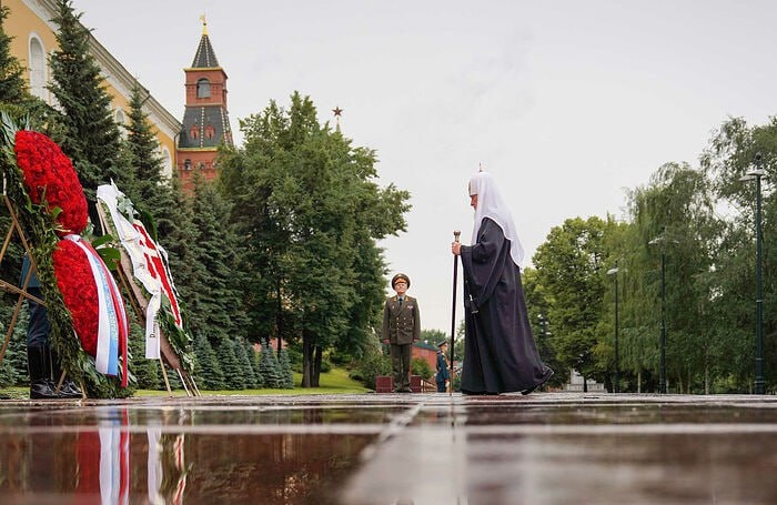 Патриарх Кирилл: «Священники — защитники духовного фронта» Народ надеется на Церковь как на защитника также, как и на вооруженные силы, считает Святейший Патриарх Кирилл. Об этом он сказал во время возложения венка к могиле Неизвестного солдата в День памяти и скорби. Обращаясь к духовенству, Владыка подчеркнул, что сила Церкви не в физической силе, а тех ценностях, что лежат в основе Отечества: — Мы с вами — защитники этого незримого фронта, который обеспечивает национальное самосознание, а значит, чувство патриотизма и подлинную независимость нашей страны. Поэтому каждый должен сознавать себя воином. А что это означает? Очень многое. Во-первых, дисциплина — конечно, у нас не такая, как в армии, но все-таки. Во-вторых, готовность служить не за страх, а за совесть, не за материальное вознаграждение, а по призванию. И, наконец, мы должны никогда не жалеть живота своего — вот это самое главное. Священник, который не будет жалеть своей жизни ради служения Господу, проживет долго и сча