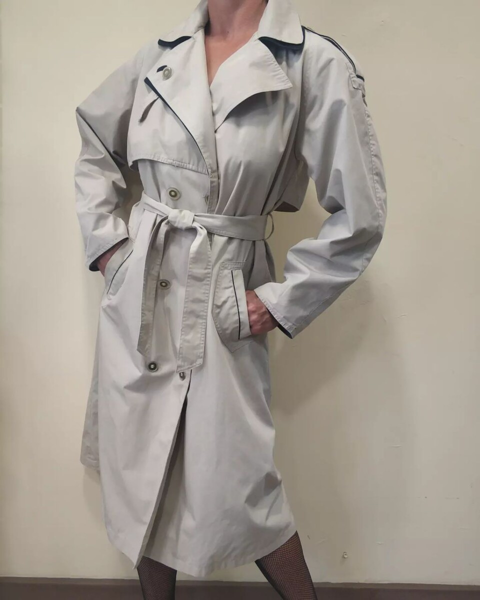 В моем гардеробе есть вещи, которые не просто одежда, а настоящие истории. Одна из таких – винтажный тренч светло-бежевого оттенка с черными контрастными вставками, купленный в секонд-хенде. Двубортный, с поясом, шлицей на пуговке – он сразу покорил меня своим вневременным шиком. Кокетка, ворот, эполеты – этих стильных "фишек" более чем достаточно, чтобы сделать образ незабываемым. Тренч – идеальный оверсайз на мою невысокую фигуру. Я люблю его за универсальность: будь то рваные джинсы и кеды для прогулки по городу, или легкое платье и каблуки для вечера – он всегда смотрится уместно. Длина миди позволяет носить его с чем угодно! Один из моих любимых образов – тренч, короткое черное платье, плотные колготки и ботинки челси. Получается одновременно дерзко и элегантно. А для более расслабленного варианта я надеваю его с белой футболкой, джинсами-скинни и лоферами. Однажды, надев свой любимый тренч, я случайно встретила одноклассницу. Казалось бы, обычная встреча, но у нее было продо