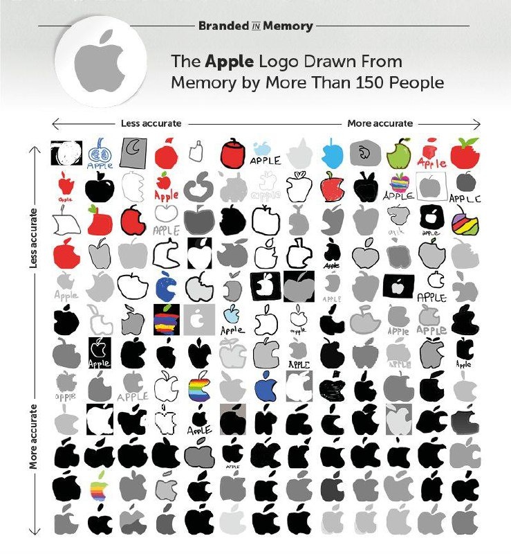 Логотип — это не просто картинка. Это визуальный якорь бренда, который должен вызывать эмоцию, ассоциирующуюся с продуктом, и формировать доверие. Недавно я изучал результаты эксперимента (Signs): 156 американцев попросили нарисовать по памяти логотипы 10 известных брендов — Apple , Adidas, Starbucks, IKEA и других. Казалось бы, мы видим эти логотипы ежедневно помним, но… не так всё просто. ➡️ Только 20% участников смогли правильно воспроизвести логотип Apple, хотя мы видим его чаще семьи. Люди добавляли то, чего там нет: каждый третий пририсовал стебель, 22% надкусили яблоко не с той стороны, а лично я всегда забываю куда наклонён лепесток. ➡️ У Adidas вместо трёх полос (с 1997 года) 1 из 10 человек нарисовал трилистник — элемент логотипа 1971 года. Хотя в России конкретно с этим логотипом справятся все. ➡️ Starbucks оказался самым сложным: лишь 6% нарисовали сирену близко к оригиналу, половина забыли корону, а многие забыли раздвоенный хвост. Тимати нарисовал матрёшку, так и оста