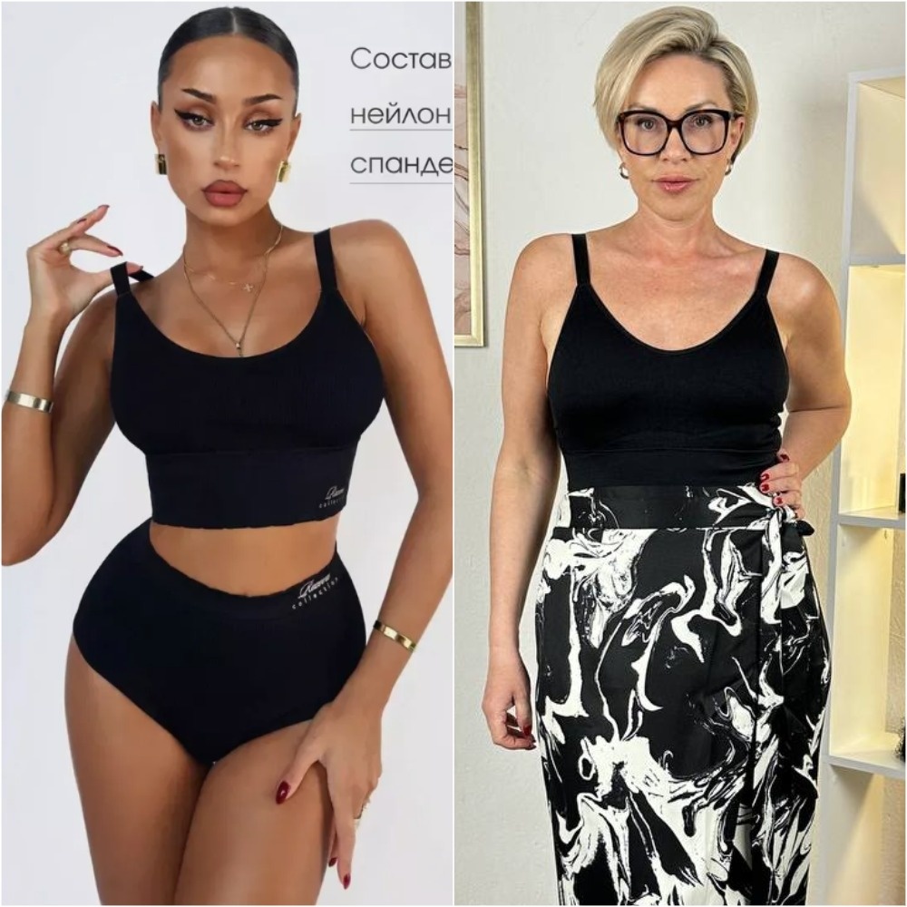 Здравствуйте, дорогие читатели! Меня зовут Ирина, я - стилист, и на этом канале показываю одежду и аксессуары с Wildberries такими, как они есть, то есть, из серии "ожидание/реальность". Мои параметры: рост 169 см, вес 62 кг, 95-75-100 ✅Основной канал: Стильно - не значит дорого! Ставьте лайк в поддержку канала, и давайте смотреть на мою сегодняшнюю покупку. Этот комплект — настоящая находка для девушек плюс сайз. Белье очень комфортное — отлично поддерживает грудь и мягко корректирует фигуру. Топ можно носить не только как бюстгальтер, но и как топ в повседневных образах, когда на улице жарко, как сам по себе, так и под разные верхние слои. Мне понравился состав: нейлон и спандекс делают ткань эластичной и приятной к телу. Белье бесшовное, в рубчик, поэтому совершенно не ощущается под одеждой. Отсутствие косточек добавляет удобства, при этом грудь остается подтянутой. Комплект черного цвета (есть также серый и бежевый) — универсальный и стильный. Подходит и для спорта, и для повседнев