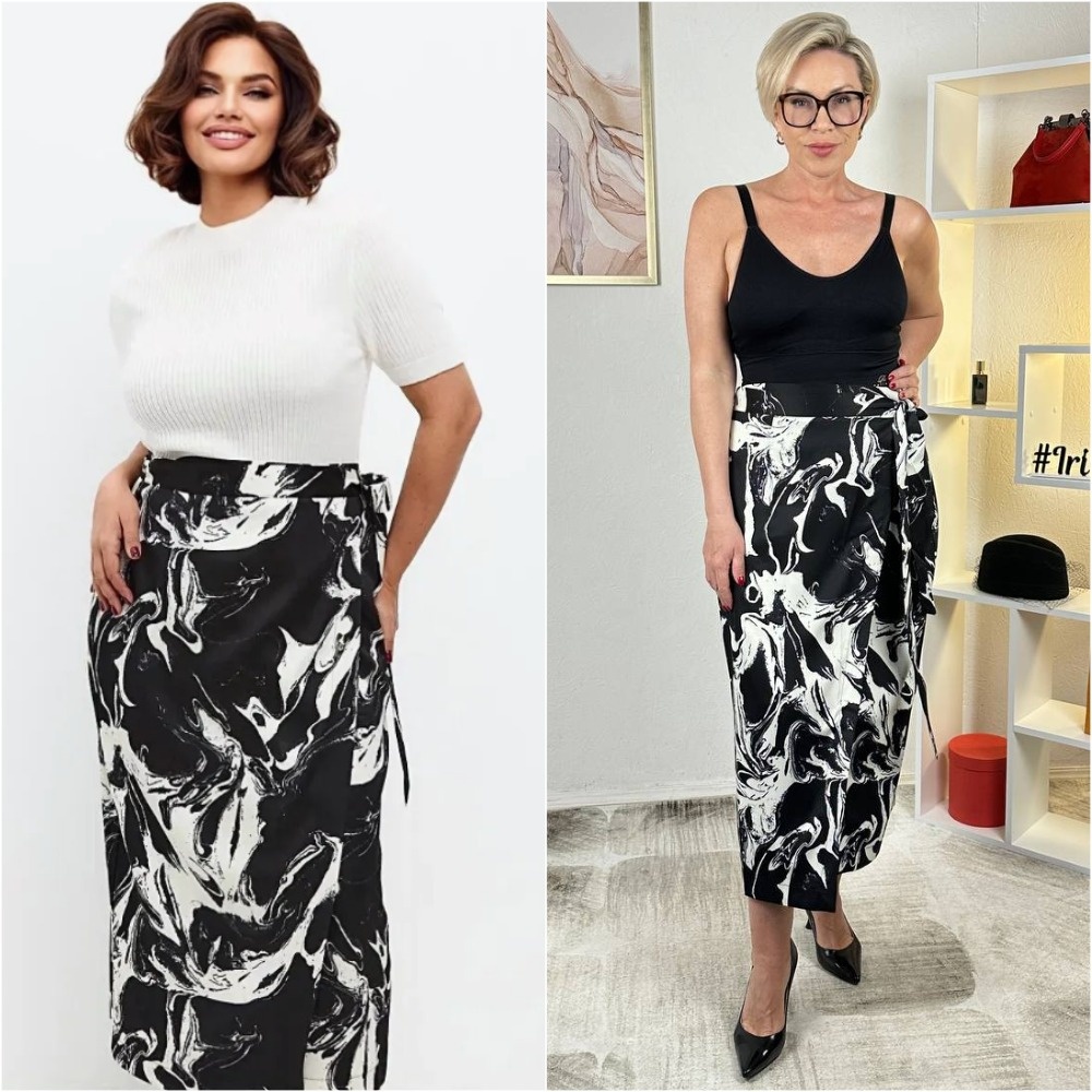 Здравствуйте, дорогие читатели! Меня зовут Ирина, я - стилист, и на этом канале показываю одежду и аксессуары с Wildberries такими, как они есть, то есть, из серии "ожидание/реальность". Мои параметры: рост 169 см, вес 67 кг, 94-74-100 ✅Основной канал: Стильно - не значит дорого! Ставьте лайк в поддержку канала, и давайте смотреть на мою сегодняшнюю покупку. Юбка-карандаш на запах в цветах-ахроматах отлично садится по фигуре, зрительно вытягивает силуэт и делает вас стройнее. Материал (вискоза, полиэстер, эластан) приятный к телу, не сковывает движения и почти не мнется. Особенно нравится дизайн с запахом и регулируемым поясом – можно завязать бант сзади или сбоку, подчеркивая талию. Высокая посадка удобна, а прямой крой выглядит элегантно. Юбка универсальна: подойдет и для офиса, и для вечернего выхода. Уход простой – бережная стирка при 30 градусах. Качество пошива на высоте: швы аккуратные, ткань плотная, но не жесткая. Очень рекомендую! С этой юбкой чувствуешь себя женственной и ув
