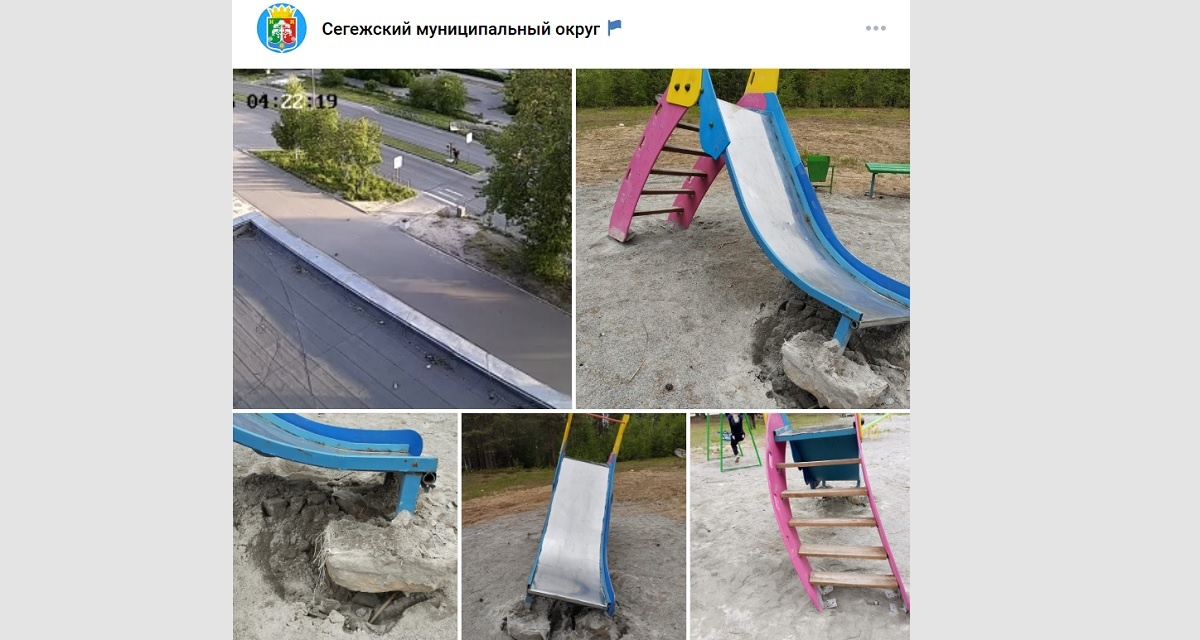 В Сегежском округе от действий хулиганов пострадала в одном случае детская площадка, в другом – цветы. Чиновники предложили хулиганам принять участие в субботнике и вернуть вазон на место. В поселке Олений в ночь на 13 июня хулиганы разгромили детскую площадку. Досталось горке – бетонное основание оказалось вырвано из грунта, так же как и металлические уголки. Конструкция сильно накренилась. В администрации округа сообщили, что вандалы устроили дрифт на питбайках и мопедах и свернули бетонное основание на детской площадке. На днях в Сегеже неизвестные вырвали с корнем цветы и унесли с собой вазон. © «Петрозаводск говорит»