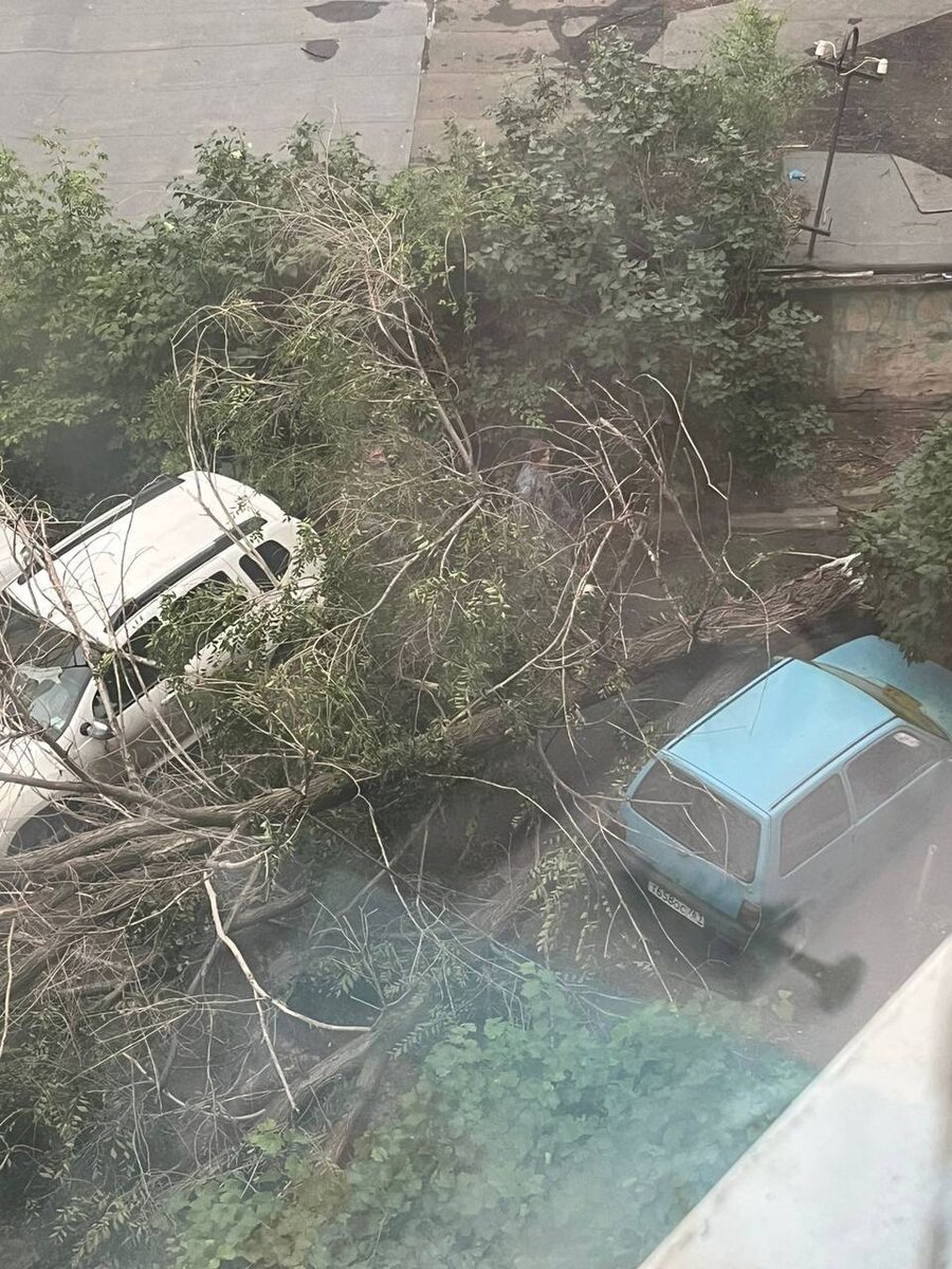 В Ростове сухое дерево упало на машины во дворе дома № 96/1 на Таганрогской.