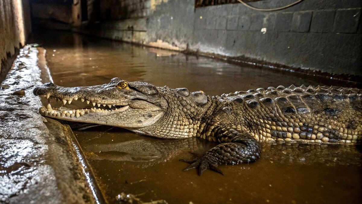Серое утро не обещало ничего необычного для полицейских, отправившихся в Петродворцовый район на очередную проверку. Адрес знакомый, вызов стандартный — обычное течение дня, к которому они привыкли. Всё изменилось, когда один из полицейских первым спустился по бетонной лестнице в полутёмный подвал. Луч фонарика скользнул по заплесневелым стенам и паукам и проржавевшим трубам — и вдруг застыл. На полу зияло углубление, заполненное мутной водой. Прежде чем страж порядка успел осмыслить увиденное, что-то в воде шевельнулось. Огромная чешуйчатая туша зашевелилась и показала пасть с острыми, как бритва, зубами. В грубом бетонном полу подвала кто-то собственноручно выдолбил яму, залил туда воду и, не мудрствуя лукаво, превратил её в бассейн для настоящего нильского крокодила — почти двух метров длиной. Он лежал почти неподвижно в мутной воде, молчаливый и опасный, — настолько чужой всему, что происходило на улице Шахматова, за дверями подвала, в непосредственной близости от дворцов и фонтан