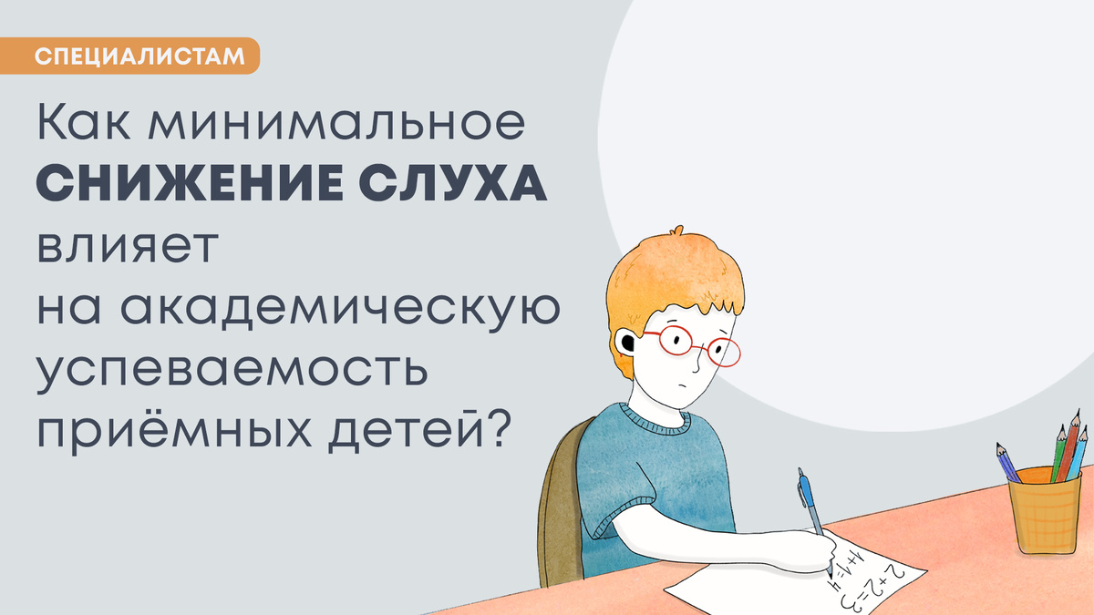 Рассказывает врач-сурдолог Светлана Хайрулина. Исследования показали, что минимальное снижение слуха у детей (до 25 дБ) в 2,5 раза чаще приводит к сложностям в обучении. Это происходит, потому что мозг тратит много энергии на то, чтобы разобрать речь, и ресурсов на когнитивную обработку звука остаётся мало. Ребёнок прикладывает много усилий, чтобы расслышать речь и понять её смысл, отчего быстро устаёт и теряет интерес к обучению. Снижение слуха ассоциируется со следующими проблемами у детей: Согласно работам исследовательницы Жанны Додд Мерфи, в американских школах от 22% до 47% детей с минимальным снижением слуха остаются на второй год обучения.