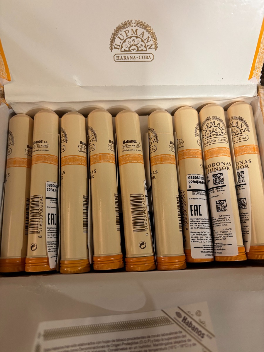 Дата дегустации: 10.04.2025 Место дегустации: кафе «Арабелла» Витола: H. Upmann Coronas Junior Формат: Cadetes (115mm x 36RG) Страна производства: Куба Средний бал клуба: 79 Основные ароматы: древесные, минеральные, перечные, земельные, кофейные, пряные, жареные. Дымность: Средняя Крепость: выше средней Вкусоароматика сигары В первой трети дуб, белый перец, немного минералов и земли. Во второй трети сигара сильно эволюционирует. Кофе, орехи и немного шоколада. Дуб и минералы набрали объем. В завершающей трети витола не проседает и до конца дарит объём большой и взрослой сигары. В основе - ароматика дерева, минералов и жареных лесных орехов! Итоги Отличная малышка с объемом большой и взрослой сигары. Не всем повезло с тягой, сильно много табака пытались уместить в столь мелком формате. В очередной раз убеждаемся, что только кубинцам под силу уместить столько вкуса в небольших форматах. Однозначная рекомендация всем новичкам пробовать кубу именно в небольших форматах. Это максимально до
