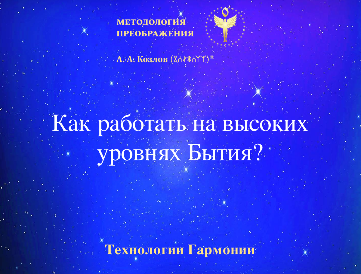 Как работать на высоких уровнях Бытия? Как человек воспринимает себя в трехмерном мире? Чему способствуют процесс познания и наработка совершенства? На вопросы отвечает Александр Анатольевич Козлов – автор Методологии Преображения. «Для выполнения работы на высоких уровнях Бытия одной настройки сознания недостаточно, через процесс преображения должна пройти вся живая система человека, все ее тонкие и духовные составляющие: полевые структуры, психика, ментальность, сила, душа, дух. Метаморфозы должны произойти и с физическим телом человека, чтобы его клетки были способны пропускать через себя потоки высоких энергий и вмещать большой запас времени. Начиная свой путь в трехмерном мире, человек воспринимает себя только как конкретную личность, основной задачей которой является достижение социальных ценностей. Познавая законы социума, поднимаясь выше физического плана, он открывает для себя более тонкие состояния внутренней тишины и душевного спокойствия, начинает постигать свой внутренний