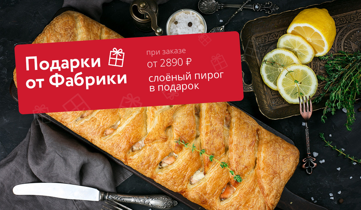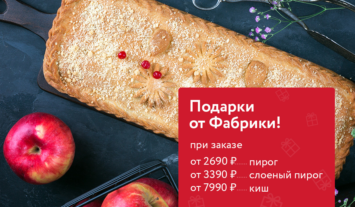 🎁 Акции от Фабрики⤵️ ✅ Подарки от Фабрики Подарок при заказе: — от 2690р - пирог шоколадно-банановый семислойный сдобно-песочный 0,5кг. — от 3390р - пирог с мясом и брокколи слоеный 0,5кг. — от 7990р - киш с курицей и грибами 1кг. Акция действует до 30.11.25 г. ✅Скидка на самовывоз 10% С Лесотехникума, 53. ✅Еженедельный розыгрыш пирогов в Инстаграме и Вконтакте Розыгрыши, конкурсы, подарки для самых активных. ✅ Промокоды В рамках акций клиенты могут получать промокоды. Подробности их использования вы можете уточнить по телефону Для заказа: ☎️200-85-40 https://fabrika-pirogov.ru/?dzen Заказы принимаем с 08.00-20.00 📍Наша пекарня находится в г.Уфа, по адресу: ул.Лесотехникума 53 (При самовывозе действует скидка 10%!) Режим работы с 08.00-20.00