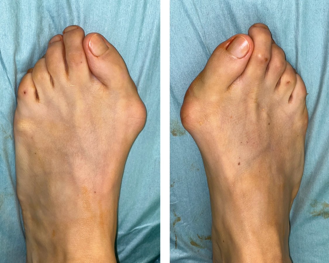 Сделал вот так. Классическим методом поставил на место первые плюсневые кости и большие пальцы, и - в связи с имеющейся гипермобильностью - сделал пластику поперечного свода собственным сухожилием через небольшой разрез на тыле стоп.