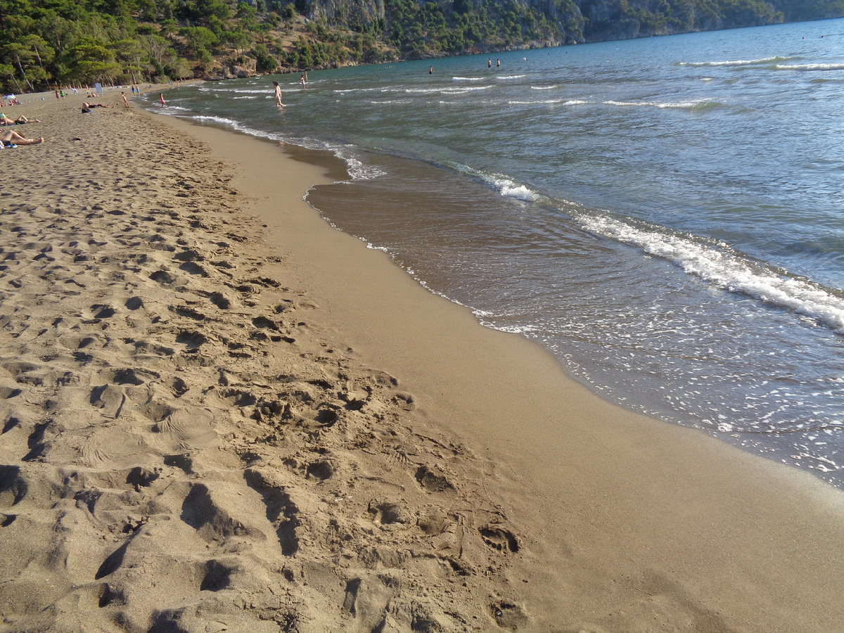 Добраться туда несложно, достаточно отдыхать в г.Мармарис, или в г.Фетхие, или еще где-то рядом, а потом уже на микроавтобусе добраться сначала до г.Дальян, а затем уже и до пляжа. Если честно, меня и мою жену пляж очень поразил и впечатлил! Там очень чистый воздух, вокруг, в основном, растут деревья хвойной породы. Если кто-то будет в районах, близких к этому месту, очень советую съездить и посмотреть этот прекраснейший пляж!