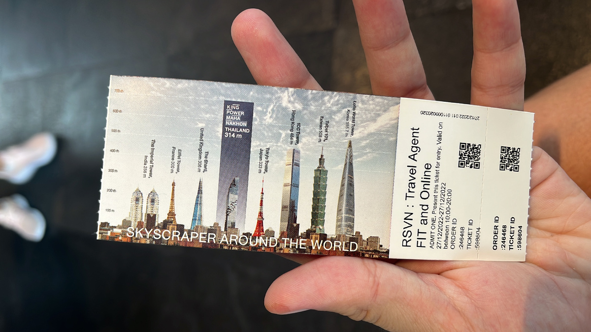После мишленовских объедений и пару коктейлей в библиотеке, на следующий день мы отправились покорять пиксельную башню Маханакхон, высота которой 314 метров или 78 этажей. Добраться до нее можно по наземному метро до станции Chong Nonsi (тёмно-зелёная ветка). Приехав к зданию около 11 дня, проверив обстановку мы поняли вот что: днём мы там умрём, поджаримся и зажаримся от палящего солнца, особенно на такой высоте. Поэтому решили сначала покататься на речных автобусах, а вечером насладиться красотами с высоты птичьего полёта. И это было самым лучшим решением. Кстати, мы ещё умудрились купить билеты по более низкой стоимости, кажется, это было благодаря комментарию, который мы увидели в гугл картах. Кто-то поделился сайтом или приложением, через которое купить билеты можно было на несколько сотен бат дешевле, потому что цена как раз на уровне 78 этажа. За вход и возможность полюбоваться видом придётся отдать от 1000-1500 бат (около 4000 – 5000 рублей). Поэтому, если захотите посетить, об