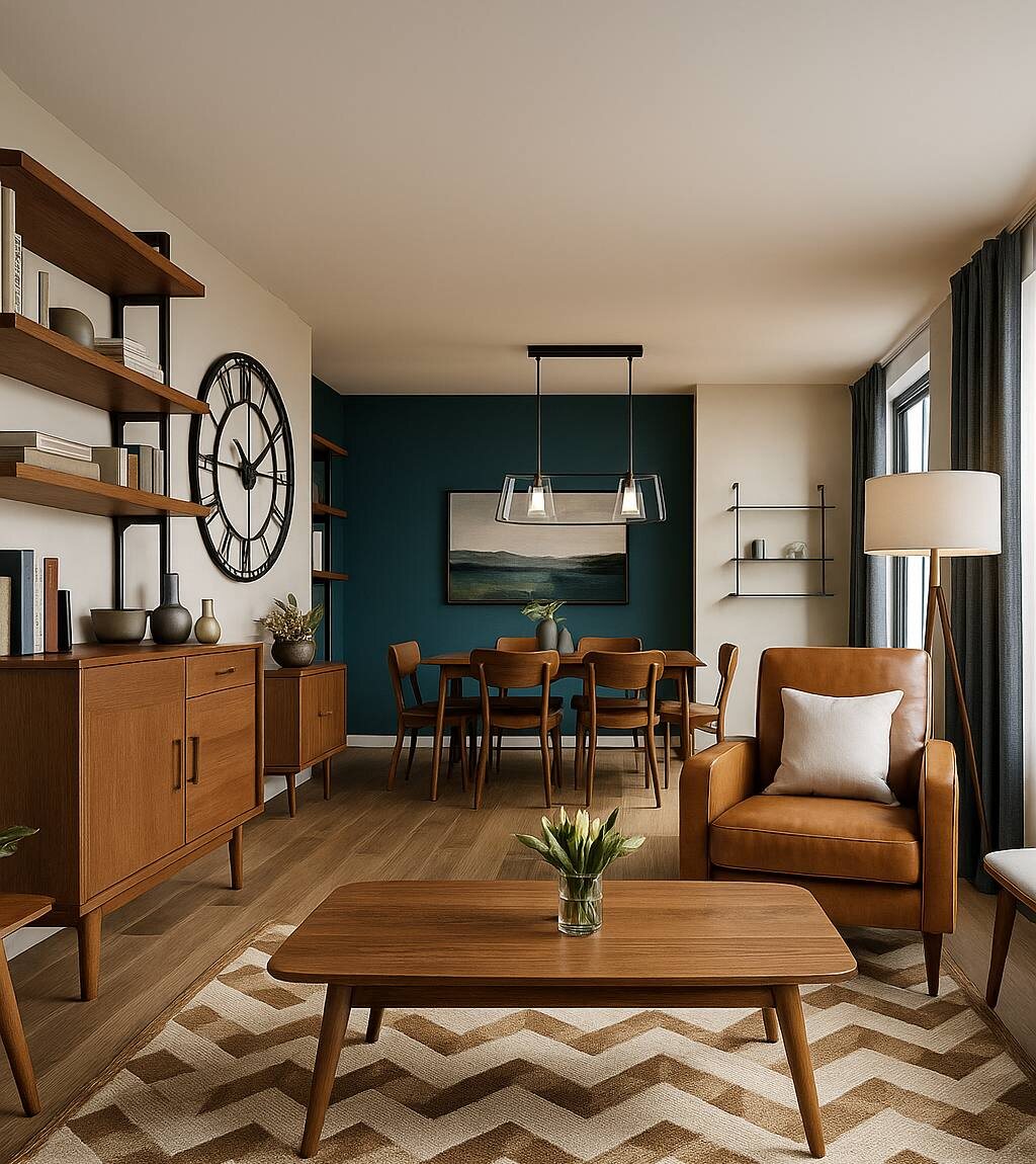 Мидсенчури модернизм (Mid-century modern) — стиль в интерьере, который берёт начало в 1950–60-х годах и продолжает привлекать внимание благодаря своей вневременной актуальности. Его выбирали и выбирают архитекторы, учёные, артисты и интеллектуалы, для которых важна не показная роскошь, а сдержанная ясность и функциональность. Мидсенчури модернизм появился в послевоенное время, когда люди смотрели с надеждой на будущее и стремились к простоте и комфорту. Сегодня стиль остаётся актуальным благодаря своей структуре, лаконичности и спокойной эстетике. Этот интерьер выбирают те, кто ценит не моду, а эстетику вне времени. В нём нет лишнего, нет надрыва, только логика, ясность и функциональность. Такой подход к дизайну объясняет его устойчивую популярность среди людей, желающих создать спокойное, функциональное и при этом выразительное жилое пространство. Если вы задумываетесь, как узнать мидсенчури модернизм, вот его ключевые признаки: Мебель в стиле мидсенчури — это не просто ретро-декор. Э