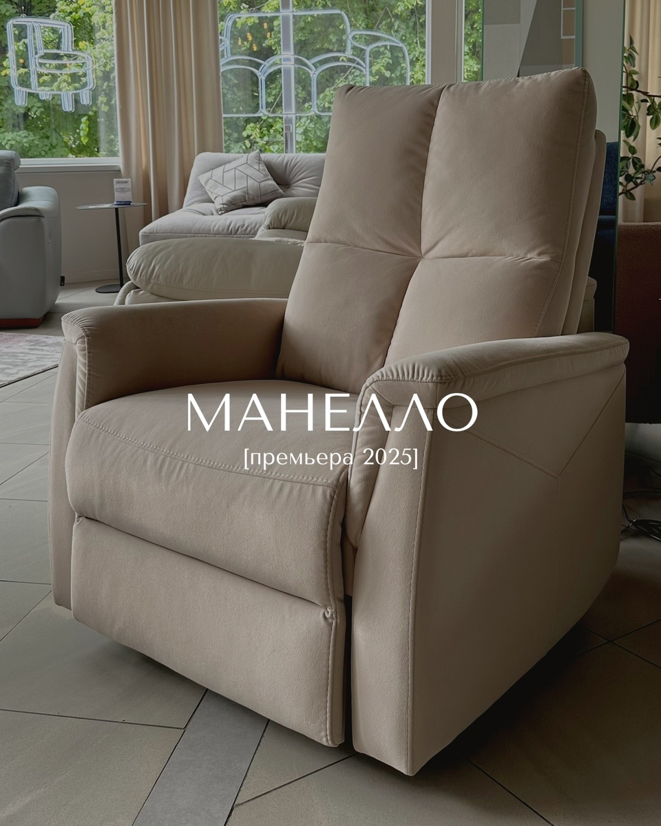 Кресло, которое так долго просили — и вот оно! «Манелло» — звучит как имя обаятельного героя, и не зря: на итальянском это «негодник», а в интерьере он точно умеет притягивать внимание. При этом кресло скромное по размеру и щедрое на комфорт, оно легко впишется даже в самый компактный уголок дома. Главная особенность кресла «Манелло» — это его идеальное сочетание формы, функций и размеров. Классический реклайнер с электрическим механизмом, управляемый одной кнопкой, двигается бесшумно и плавно. Благодаря высокой спинке кресло подойдёт людям любого роста — поддержка шеи и головы всегда будет на высоте. Подушка сиденья выполнена на независимых пружинах немецкого производства — они обеспечивают точечную поддержку и долго сохраняют форму. В спинке — мягкий и экологичный синтепух. В свою очередь, дополнительный наполнитель HR-поролон легко восстанавливается после нагрузки, не теряя упругости. Кресло доступно в двух размерах: